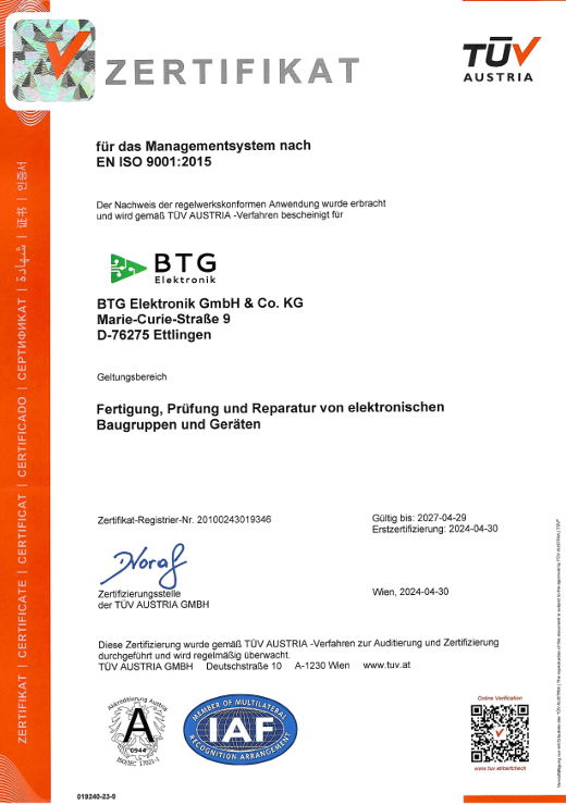 Seit dem 12. April 2018 sind wir nach der Norm DIN EN ISO 9001:2015 zertifiziert.